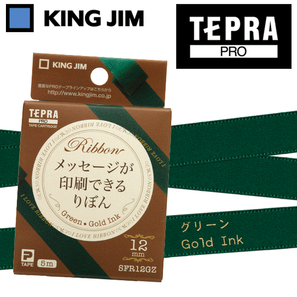 KING JIM キングジム「テプラ」PRO用テープカートリッジ りぼん(テプラ専用リボン)SFR12GZ 幅12mmx5m グリーン