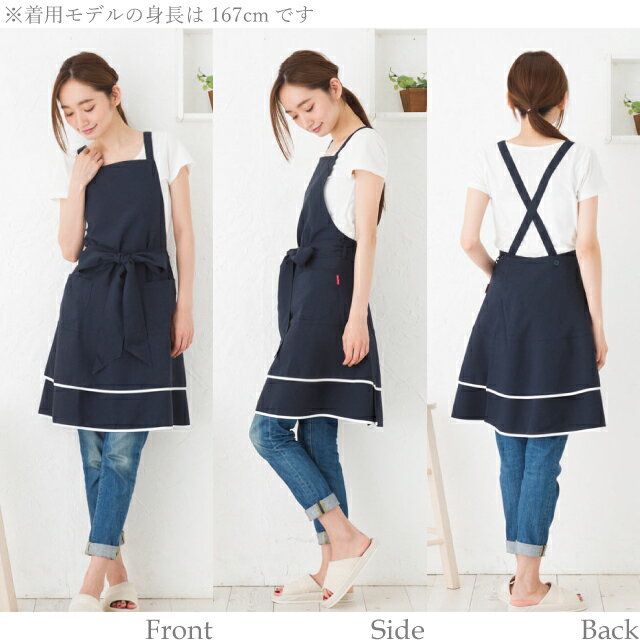 ウエストのリボンと上品フレアな2段フリルがかわいいクロスエプロン。