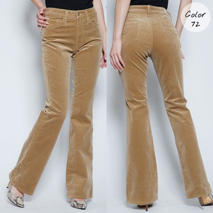 高めの位置から広がるフレアーが脚長効果を生み、また裾上げをしてもきれいなフレアーが残ります。