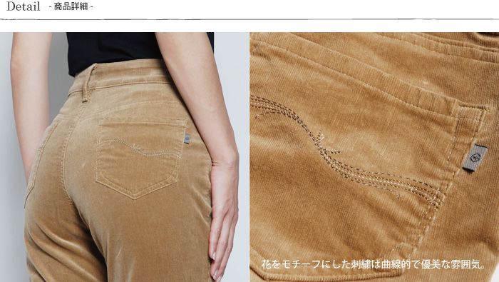 ■関連キーワードMrs.Jeana ミセスジーナ レディース キャメル 58cm 61cm 64cm 67cm 70cm 秋冬 秋物 冬物 SALE セール 値下げ ボトムス パンツ ズボン ずぼん ブーツカット フレアー フルレングス ロングパンツ カラーパンツ ミセス きれいめ 40代 50代 TallSize 股上深め 暖か素材 あったか コーデュロイ コーデユロイ コーディロイ コーデロイ [レディース パンツ][パンツ レディース きれいめ]シルエット:ブーツカット股上 :普通ストレッチ:あり素材 :ストレッチコーデュロイクオリティ:綿96% ポリウレタン4%洗濯表示:洗濯機(弱)30℃(乾燥機禁止) エンソサラシ禁止 アイロン禁止 陰干しモデル身長:172cm ウェスト:64cmミセスジーナでは毎年人気のコーデュロイ素材!細畝コーデュロイの上品な雰囲気が人気の秘密です。