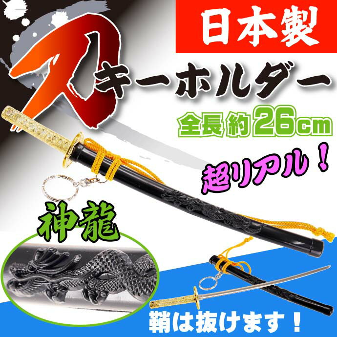 送料無料 キーホルダー 特大神龍刀26cm 黒 日本製 お土産プレゼントに最適 刀のキーホルダー ms115