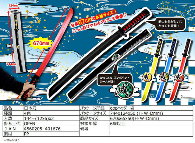 日本刀(全4色) 12入アソート (鬼滅の刃似/和柄/剣/日輪刀)
