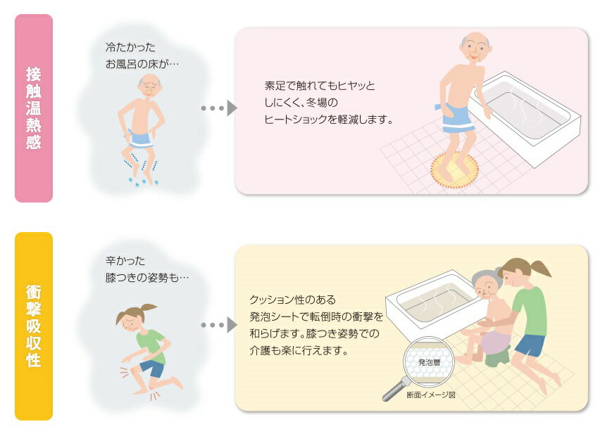 (商品特長) ・転倒時の衝撃と冬場のヒートショックを軽減します。
